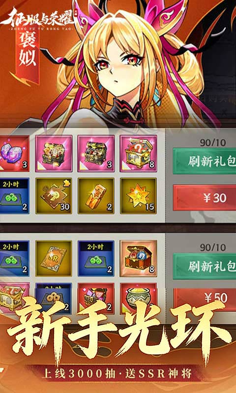 《征服与荣耀》是一款三国题材放置卡牌游戏,融合新国漫审美,将三国乱世演驿得淋漓尽致。游戏内数位红颜女将英姿飒爽,还有风采各异的三国猛将无不让人惊叹!游戏拥有全新的战斗机制,超强对战打击感,并融合SLG创新玩法让策略更加多样化!让我们一起穿越时空,回溯过去,塑造属于自己的三国世界吧!